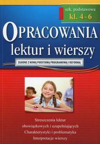 Seria Opracowania - język polski została napisana dla uczniów, którzy oprócz przeczytania lektury lub jej streszczenia potrzebują jeszcze wyjaśnienia problematyki utworu, charakterystyki występujących w niej postaci, przypomnienia faktów, słowem: interpretacji. Autorzy serii znacznie rozszerzyli omówienia poszczególnych tekstów literackich, po to, by nawet wymagający nauczyciel otrzymał od swego ucznia satysfakcjonującą odpowiedź. Doboru lektur dokonano na podstawie prowadzonych przez ostatnie lata ankiet oraz listów od czytelników. Dzięki temu jest on z pewnością trafny i odpowiada zapotrzebowaniu uczniów. Książki z tej serii doskonale spełniają też rolę prywatnego, osobistego korepetytora, który tłumaczy zawiłości literatury polskiej i obcej. Zakres całej szkoły podstawowej. Wszystkie lektury z podstawy programowej, zgodne ze standardami wymagań egzaminacyjnych, Omówienia epok, Streszczenia lektur, Interpretacje wierszy.