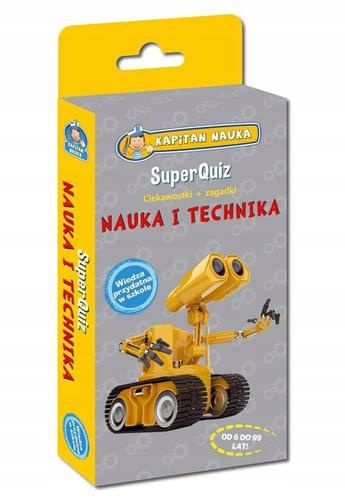 Kapitan Nauka SuperQuiz Nauka i Technika Unikalna książeczka z ciekawostkami i wciągającymi zagadkami dla dzieci W SuperQuizie NAUKA i TECHNIKA znajdziesz: - fakty i ciekawostki z zakresu fizyki i chemii - słynne wynalazki (dynamit, żarówka i inne) - zasady działania m.in. komputera czy lasera - eksperymenty do samodzielnego wykonania SuperQuiz Nauka i Technika to niezbędnik ucznia i każdego dziecka zainteresowanego poszerzaniem wiedzy czy naukami ścisłymi. z jego pomocą uzupełni wiadomości zdobyte w szkole i zdobędzie nowe z zakresu fizyki, chemii oraz historii ciekawych wynalazków. Wciągające teksty i ciekawostki zachęcą do nauki wszystkie dzieci. Dla dorosłych to okazja do powtórki wiedzy i znakomity pomysł na połączenie zabawy z najmłodszymi z ich edukacją. Mali naukowcy dowiedzą się z SuperQuizu m.in. jak powstaje tęcza, czym jest prąd elektryczny, jak działa radar czy wariograf, z jaką prędkością leci samolot. Dzieci poznają odpowiedzi na nurtujące je pytania, np. dlaczego w lodówce jest zimno, jak powstaje bańka mydlana czy dlaczego podczas pieczenia chleb rośnie. zainteresowani medycyną dowiedzą się, jak działają stetoskop i defibrylator oraz na czym polega klonowanie czy RTG. Najmłodsi poznają kilka eksperymentów, które mogą przeprowadzić samodzielnie m.in. stworzą darmową żarówkę czy dowiedzą się, jak zgasić płomyk świecy bez dmuchania na niego. Na rewersach umieszczono ponad 150 pytań do tekstów w formie quizów. Interesujące zagadki i zaskakujące odpowiedzi sprawią, że nauka stanie się pasjonującą zabawą. Kapitan Nauka wciągnie w fascynujący świat poszerzania wiedzy wszystkie dzieci, nawet te mniej zainteresowane uczeniem się!