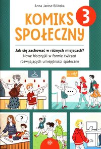 Komiks społeczny 3 to zestaw historyjek, które tym razem skupiają się na tym, jak należy zachować się w różnych miejscach, takich jak: teatr, restauracja, muzeum, poczta, biblioteka. Na końcu każdej historyjki znajdują się ciekawe ćwiczenia mające na celu rozszerzenie omawianego tematu oraz sprowokowanie do dyskusji. Komiks społeczny 3 to książka skierowana do dzieci i młodzieży w wieku 7–13 lat, ich terapeutów, nauczycieli oraz rodziców. Forma publikacji sprawdzi się podczas indywidualnej pracy z dzieckiem, a także w trakcie zajęć grupowych czy lekcji profilaktyczno-wychowawczych.