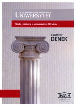 Wśród zawartych w niniejszej publikacji opracowań, Czytelnik natrafić może na powtarzające się wątki dotyczące poszukiwania odpowiedzi na pytanie: co robić, żeby kształcić w uniwersytecie mądrzej, nowocześniej, pełniej, jaśniej, lepiej, skuteczniej, efektywniej - na miarę zmiennego rynku pracy i wyzwań społeczeństwa wiedzy? Są one w tego typu opracowaniach trudne do uniknięcia, a jednocześnie stanowią konieczne nawiązania, stanowiące fragmenty pewnej całości. Zostały one w niniejszej publikacji zachowane świadomie, jako że spełniają kluczowe znaczenie w holistycznych rozważaniach o dydaktyce uniwersyteckiej. Jest z nią tak, jak z naszą piłką nożną. Mamy stadiony, piłkarzy i trenerów, ale nie mamy sukcesów. Czy nie wpadliśmy w koleiny abstrakcyjnego, hermetycznego, żyjącego własnym życiem kształcenia i wychowania uniwersyteckiego? Trudno na polskim gruncie doszukać się istnienia szkoły dydaktycznego myślenia o kształceniu akademickim. Stąd postanowienie poprawy, poza zwalczaniem zaniedbań, wymaga intensywnej i twórczej pracy nad różnymi aspektami dydaktyki szkoły wyższej. [Z przedmowy prof. zw. dra hab. Andrzeja Radziewicza-Winnickiego] Wszystkie refleksje i uwagi, które nasuną się Czytelnikom po lekturze nowej książki Kazimierza Denka będą bardzo ważne i skłaniać powinny - w co głęboko wierzę - do afirmującej zadumy i głębokiego respektu dla wieloletniej wytężonej pracy Autora. Credo sygnalizowanych pokrótce dokonań Profesora Kazimierza Denka sprowadza się do eksponowanego przeświadczenia, iż współczesny nauczyciel akademicki - członek społeczności uniwersyteckiej jest nie tylko reprezentantem świata nauki, lecz posiada także liczne i ważne zobowiązania dydaktyczne. Nasz Autor jest więc pełnym pasji poznawczej uczonym i oddanym ludziom dydaktykiem. Proponując Państwu lekturę niniejszej książki, wyrażam nadzieję, iż stanowić będzie ona inspirację do przebudowy tradycyjnej ideologii i często zaściankowego stanu zastanego w rodzimym szkolnictwie wyższym, świadomie prowadząc ku nowoczesności, tolerancji, pluralizmowi i demokratyzacji wiedzy, unikając przy tym fikcji, zakłamań, czy też powielania utartych kanonów.