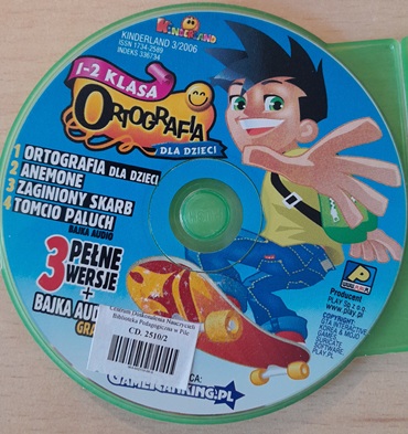 Ortografia dla dzieci : klasa 1-2. Cztery pełne wersje gier dla dzieci. - Multimedia interakcyjne. - Warszawa : PLAY, 2006. - 2 dyski optyczne (CD-ROM) ; 12 cm + Płyta CD.