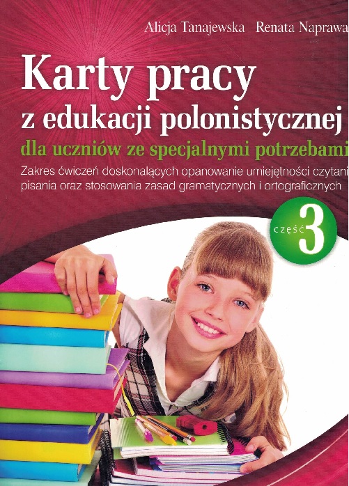 Karty pracy z edukacji polonistycznej dla uczniów ze specjalnymi potrzebami. Część 3. Zakres ćwiczeń doskonalących opanowanie umiejętności stosowania zasad gramatycznych i ortograficznych przeznaczone są dla: - uczniów z trudnościami w uczeniu się i zdobywaniu wiadomości oraz umiejętności z edukacji polonistycznej, - uczniów z trudnościami w pisaniu, czytaniu oraz opanowaniu zasad ortograficznych i gramatycznych, - uczniów objętych zindywidualizowaną ścieżką kształcenia w zakresie przedmiotów sprawiających trudności edukacyjne, tj. edukacji polonistycznej, - uczniów objętych zajęciami indywidualnymi w zakresie przedmiotów sprawiających trudności edukacyjne, tj. edukacji polonistycznej, - uczniów z niepełnosprawnością intelektualną w stopniu lekkim, - uczniów uczęszczających na zajęcia korekcyjno-kompensacyjne, - uczniów z deficytami rozwojowymi w zakresie percepcji wzrokowej, słuchowej.