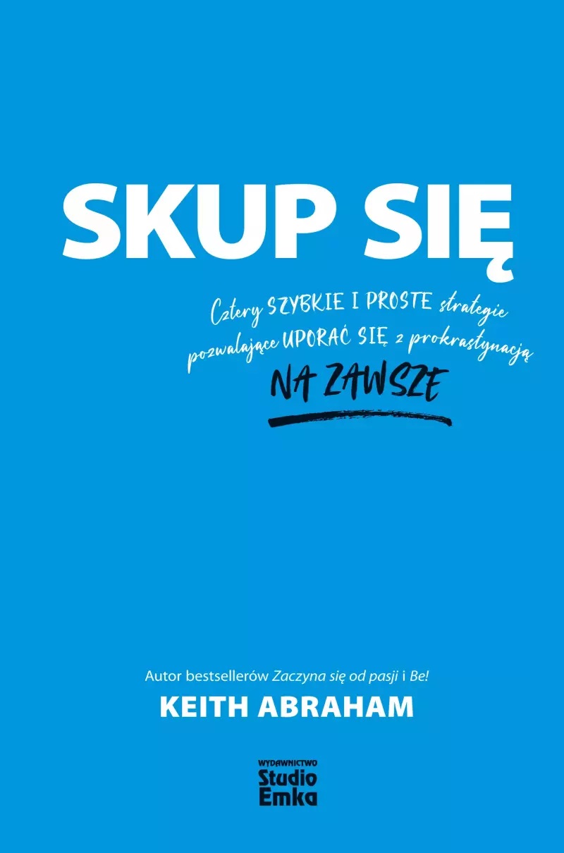 Co możesz osiągnąć dzięki SKUPIENIU? Co mogłoby się wydarzyć w twoim życiu, gdyby ci się udało OGRANICZYĆ PROKRASTYNACJĘ? Czy ta książka potrafi ci pomóc? Owszem, jeśli tylko chcesz pokonać prokrastynację, uporać się z przeszkodami wstrzymującymi twój rozwój i opanować umiejętność skupienia się, lektura tej książki pozwoli ci zmierzać ku temu wszystkiemu, czego pragniesz, a zarazem pomoże ci dystansować się wobec tego, czego chcesz uniknąć! Jak mogłoby wyglądać twoje życie, gdyby udało ci się pokonać nawyk prokrastynacji i tym samym w pełni wykorzystać twój potencjał? W tej książce podsuwam ci sprawdzone pomysły, które odmienią twoje życie, twoją karierę i twój świat. Jeśli czujesz, że nadeszła właśnie ta chwila, gdy mocniej niż kiedykolwiek indziej musisz się skupić na tym, co jest w twoim życiu najważniejsze, otwórz tę książkę i zacznij ją czytać! Albo przejdź od razu do rozdziału pierwszego, w którym znajdziesz dwa ekspresowe rozwiązania pozwalające odmienić twoje życie. Keith Abraham od ponad 25 lat pozostaje jednym z czołowych światowych liderów kreatywnego doradztwa – uczy, jak dzięki pasji osiągać wyjątkowe efekty. Z zaangażowaniem zajmuje się badaniami, przekazywaniem wiedzy i pomaganiem ludziom w odkrywaniu ich pasji, by oni z kolei mogli przekształcać ją w kapitał osobisty i zawodowy. Keith jest autorem 4 bestsellerów wydanych w 12 językach; dotarł też ze swoim wyjątkowym i inspirującym przesłaniem do ponad 1,5 miliona słuchaczy z 23 krajów, pomagając różnym osobom w wyznaczeniu ponad 14 milionów celów.
