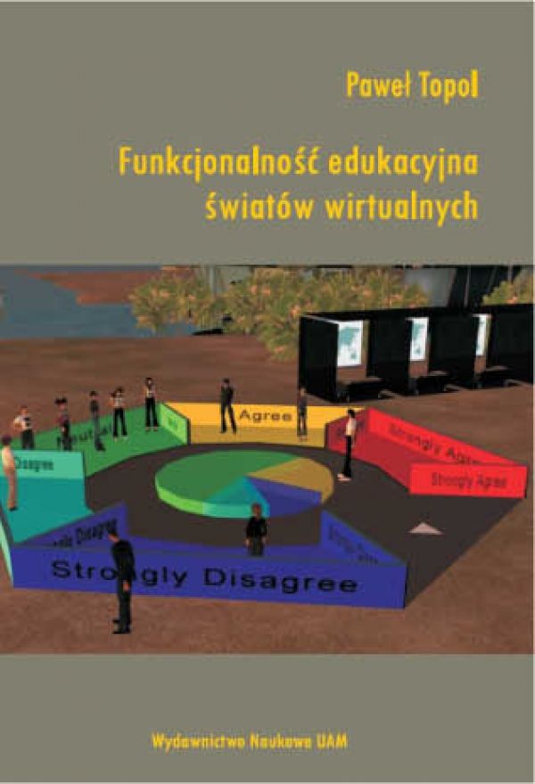 W publikacji podjęto próbę kompleksowej analizy fenomenu edukacji w trójwymiarowych światach wirtualnych, który w naukach o edukacji na świecie ma swoje miejsce od ponad 10 lat, natomiast w Polsce jest wciąż stosunkowo mało poznany. Książka traktuje o tzw. światach wirtualnych „na serio”, w odróżnieniu od światów-gier. Największym z nich obecnie jest Second Life, w którym działają setki instytucji edukacyjnych, a uniwersytety mają swoje wirtualne kampusy. W pierwszych rozdziałach wyjaśniono pojęcia m.in. wirtualności, cyberprzestrzeni, światów syntetycznych, immersji oraz odniesiono światy wirtualne do teorii uczenia się, a następnie zanalizowano różne znaczenia pojęcia funkcjonalności. W drugiej części zaprezentowano i zilustrowano wiele miejsc, głównie w Second Life, gdzie realizowane są projekty z wielu obszarów edukacji. W trzeciej części opisano autorski Pakiet Edukacyjny możliwy do zastosowania w światach wirtualnych przy nauce języka obcego oraz wyniki obszernych badań empirycznych dotyczących działania Pakietu Edukacyjnego w praktyce. Na końcu zamieszczono minisłownik światów wirtualnych oraz gotowe szablony użyte w Pakiecie – jako wzór metodyczny.