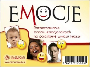 Emocje : rozpoznawanie stanów emocjonlanych na podstawie wyrazu twarzy. - [Gdańsk] : Wydawnictwo Harmonia, [2012]. - 1 gra (96 kart dwustronnych) : karton, plastik, ilustracje kolorowe ; w pudełku 3x10x13 cm.