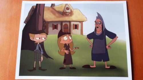 Dwustronne karty narracyjne teatrzyku Kamishibai. Kartonowe plansze z obrazkami opowiadają historię, a każda plansza przedstawia kolejny fragment opowieści.