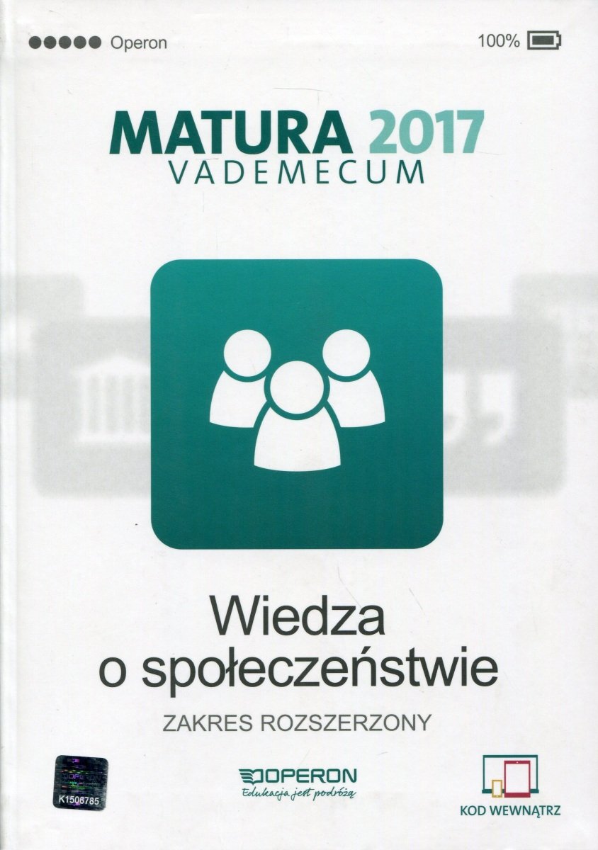 Tyt. grzbietowy: Vademecum : Matura 2017 : wiedza o społeczeństwie : zakres rozszerzony.