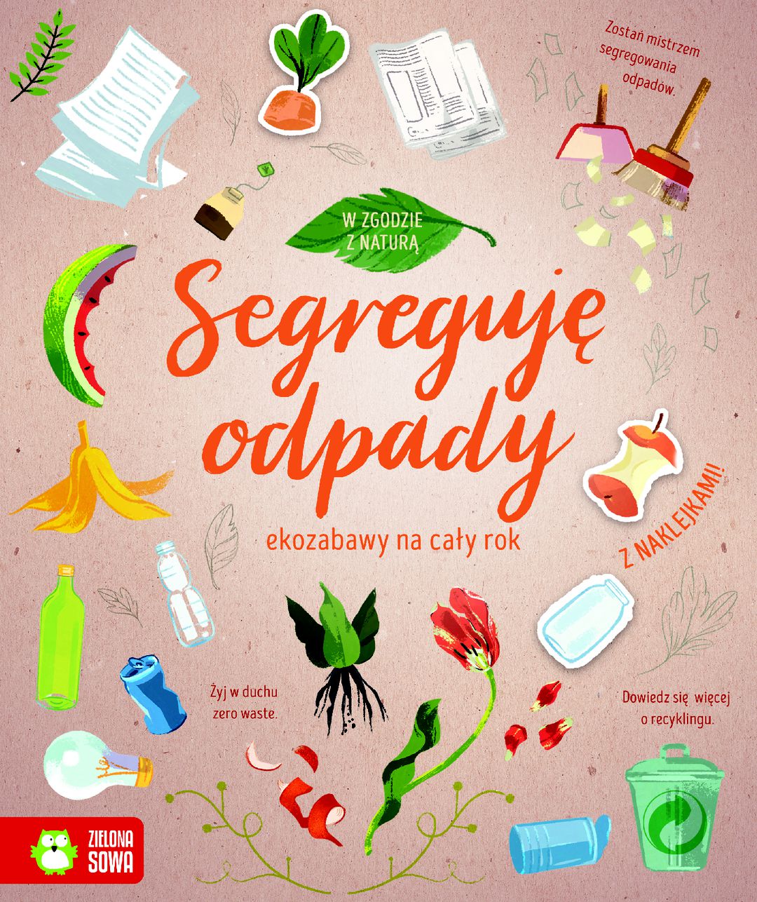 Segreguję odpady : ekozabawy na cały rok / redaktor prowadzący: Maria Mazurowska ; ilustracje: Aleksandra Szpunar. - Wydanie I. - Warszawa : Zielona Sowa, copyright 2021. - [64] strony, [2] karty tablic : ilustracje kolorowe ; 25 cm.