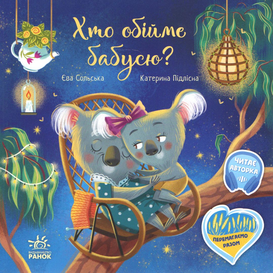 Książka w języku ukraińskim. Книжка для сімейного читання. Це історія про маленьку коалу Лілі, яка дуже любить свою бабусю. Якось вона дізналася, що той, кого обіймають, почувається щасливим. Лілі дуже хотіла, щоб бабуся була щаслива, але маленька коала так рідко гостювала у неї. Поки онучки не буде поруч, хто ж обійматиме бабусю?