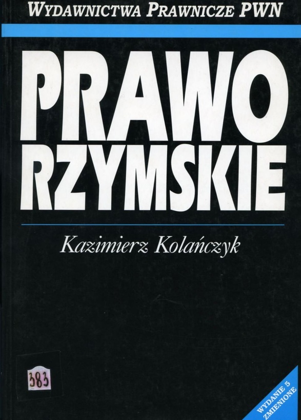 Prawo rzymskie / Kazimierz Kolańczyk ; zaktualizował Jan Kodrębski. - Wydanie V zmienione (drugi dodruk). - Warszawa : Wydawnictwa Prawnicze PWN, 1999. - 521, [1] strona : 1 rysunek ; 24 cm.
