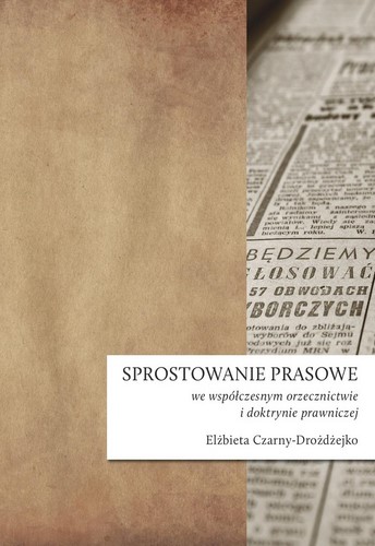 SPIS TREŚCI: Wykaz skrótów 1. Wstęp 2. Ukształtowanie się obecnej regulacji dotyczącej sprostowania na gruncie ustawy Prawo prasowe z 1984 r. 3. Polska instytucja sprostowania prasowego w ocenie Europejskiego Trybunału Praw Człowieka 4. Funkcje sprostowania prasowego 5. Definicja sprostowania prasowego 5.1. Materiał prasowy jako przedmiot sprostowania 5.2. Informacja podlegająca sprostowaniu 5.3. Cechy sprostowania prasowego 6. Miejsce obowiązkowego opublikowania sprostowania prasowego 7. Podmiot zobligowany do opublikowania sprostowania prasowego 7.1. Redaktor naczelny jako podmiot zobligowany do opublikowania sprostowania 7.2. Zmiana redaktora naczelnego w trakcie postępowania sądowego 8. Podmioty uprawnione do dochodzenia sprostowania 9. Wewnątrzredakcyjne postępowanie związane z dochodzeniem sprostowania prasowego 9.1. Ustawowe sposoby doręczenia sprostowania 9.2. Obowiązek identyfikacji sprostowania przez zainteresowanego 9.3. Objętość i język sprostowania 10. Wymogi dotyczące zamieszczenia sprostowania 10.1. Termin, miejsce i sposób publikacji sprostowania 10.2. Dopuszczalność modyfikacji treści sprostowania przez redaktora naczelnego 10.3. Dopuszczalność zamieszczania komentarzy do tekstu sprostowania 11. Przyczyny odmowy umieszczenia sprostowania 11.1. Obligatoryjne przesłanki odmowy opublikowania sprostowania prasowego 11.2. Fakultatywne przesłanki odmowy opublikowania sprostowania 11.3. Zasadność podziału na przesłanki obligatoryjne i fakultatywne odmowy publikacji sprostowania 11.4. Obowiązek informacyjny spoczywający na redaktorze naczelnym i jego skutki w postępowaniu sądowym 12. Problematyka związana z dochodzeniem opublikowania sprostowania przed sądem 12.1. Pozew o nakazanie sprostowania materiału prasowego 12.2. Dopuszczalność modyfikacji treści sprostowania w pozwie 12.3. Terminy zawite w postępowaniu o nakazanie sprostowania 12.4. Dopuszczalność modyfikacji treści sprostowania w trakcie trwania procesu sądowego oraz w wyroku sądowym 12.5. Określenie właściwości sądu rozpoznającego sprawy o nakazanie opublikowania sprostowania prasowego oraz wskazania odnoszące się do dynamiki prowadzenia procesu 13. Zakończenie