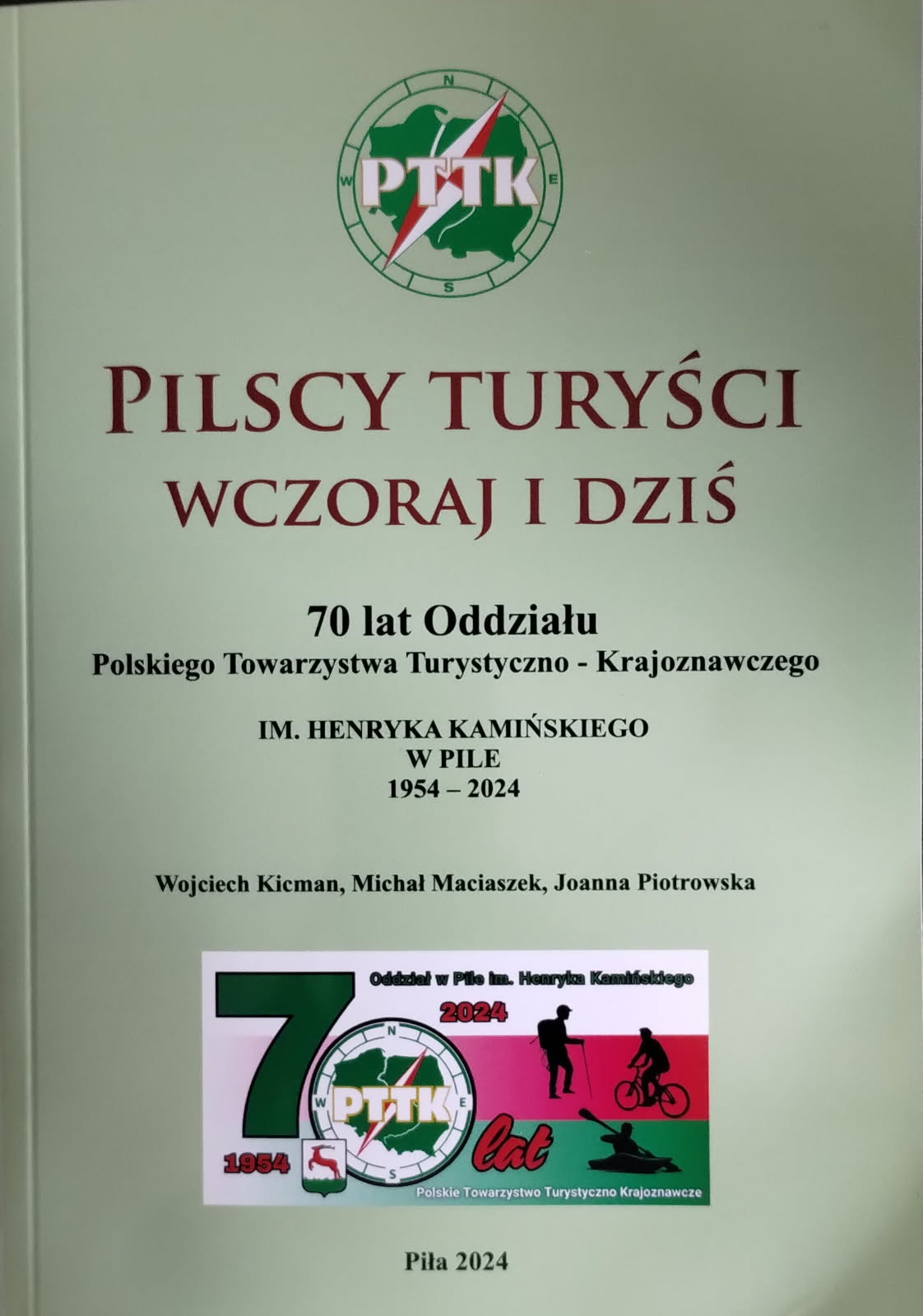 "Siedemdziesiąt lat minęło… jak jeden dzień…. Nie ma chyba w Pile osoby, która nie słyszałaby o PTTK. Trudno się zresztą temu dziwić, skoro pilski Oddział Polskiego Towarzystwa Turystyczno-Krajoznawczego istnieje od 1954 roku. Ta historia to przenikanie 70 lat działania naszego Oddziału z historią ościennych kół i oddziałów oraz 16- letnią historią Zarządu Wojewódzkiego. Ta historia to praca społeczna, wolontariat wielu, niejednokrotnie anonimowych, członków PTTK, popularyzacja turystyki i krajoznawstwa wśród dzieci, młodzieży i dorosłych turystów."