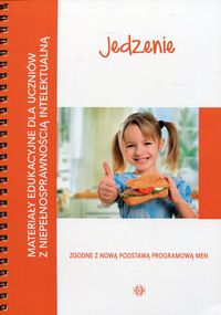 Materiały edukacyjne dla uczniów z niepełnosprawnością intelektualną” to seria książek opracowana na podstawie Rozporządzenia Ministra Edukacji Narodowej z dnia 14 lutego 2017 r. Będzie ona pomocna dla nauczycieli i terapeutów podczas realizacji treści nauczania i wychowania zawartych w podstawie programowej. W tej książce przedstawiono zagadnienia dotyczące działu „Jedzenie”. Do ich omówienia wykorzystano zdjęcia. Na stronach parzystych znajdują się fotografie dla ucznia. Na stronach nieparzystych – pytania, które czyta nauczyciel, terapeuta lub rodzic. Pierwsze pytania dotyczą zdjęcia. Kolejne pomagają zdobyć lub utrwalić dodatkowe wiadomości i umiejętności związane z omawianym tematem. Ostatnie pytania dotyczą doświadczeń ucznia. Pod pytaniami umieszczono ćwiczenia dla dziecka, dzięki którym ma ono utrwalić zdobyte informacje.