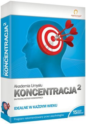 Akademia Umysłu : KONCENTRACJA 2 to sprawdzone metody i ćwiczenia, które rozwiną i wzmocnią Twoją umiejętność skupienia uwagi. Przeznaczone są dla uczniów, studentów i tych wszystkich, którzy pragną w pełni wykorzystać niezwykłe możliwości własnego mózgu. Ćwiczenia są nie tylko skuteczne, ale są też ciekawą i przyjemną formą spędzania czasu. Ćwicząc tylko 15 minut dziennie : * wspomożesz pamięć, pobudzisz wyobraźnię * ułatwisz skuteczną naukę * wzmocnisz kojarzenie i umiejętność analizy * zwiększysz sprawność myślenia i przyswajania informacji KONCENTRACJA 2 to: * aż 16 ciekawych ćwiczeń i setki opcji - nigdy się nie znudzisz * 10 poziomów trudności - dostosujesz trening do swoich potrzeb i umiejętności * tryb nauki - program ocenia postępy, dobiera intensywność i trudność ćwiczeń * intuicyjny i atrakcyjny interfejs - łatwa i przyjemna obsługa programu * nieograniczona liczba użytkowników - cała rodzina może ćwiczyć i zapisywać swoje wyniki