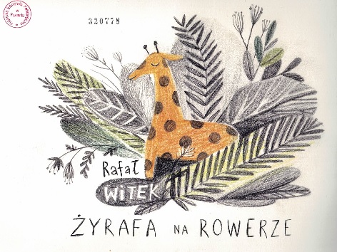 Żyrafa na rowerze / Rafał Witek ; ilustracje Joanna Rusinek. - Łódź : Ośrodek Działań Ekologicznych "Źródła" ; Warszawa : Polska Pomoc, 2018. - Teka (17 kart tablic) : ilustracje kolorowe ; 28 x 38 cm.