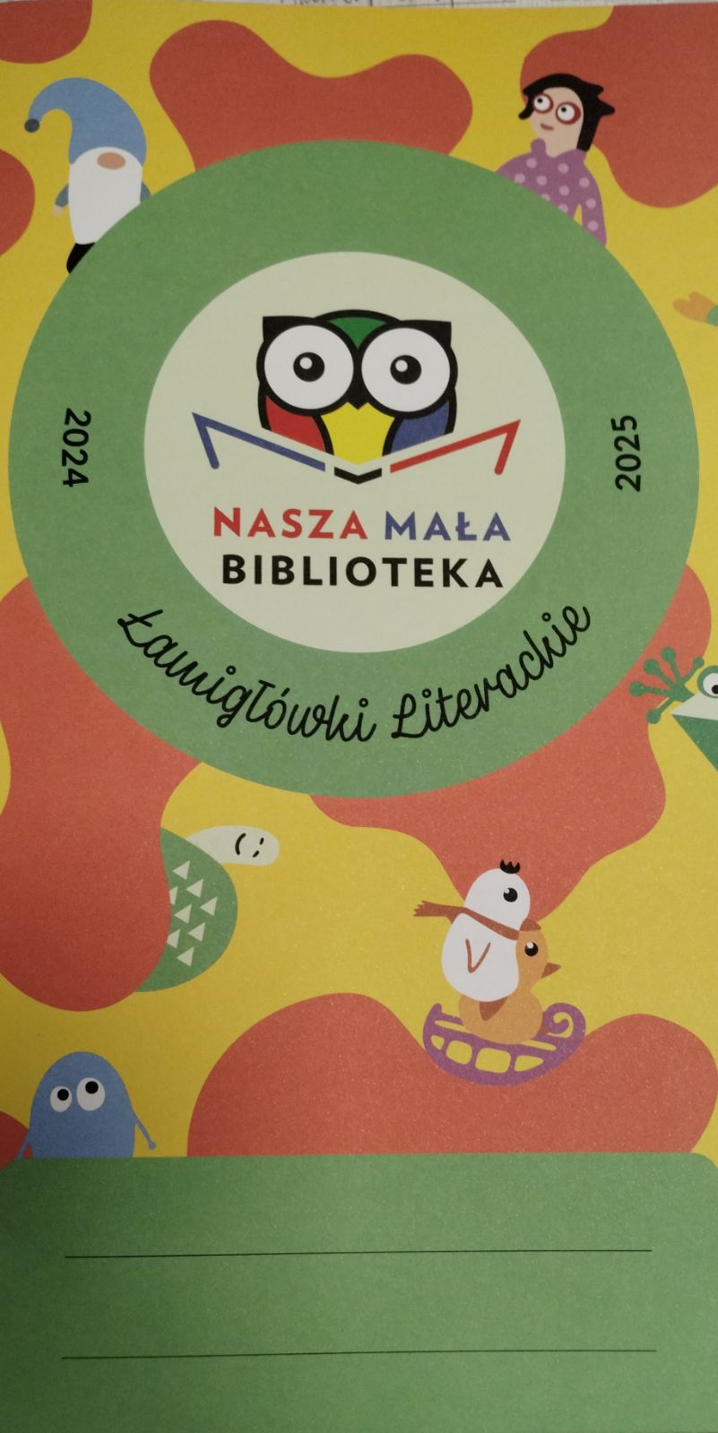 Nasza Mała Biblioteka : Łamigłówki literackie 2024-2025. - Warszawa : Wydawnictwo Ezop Sp. z o.o. , 2024. - 34, [1] strona : ilustracje ; 30 cm.
